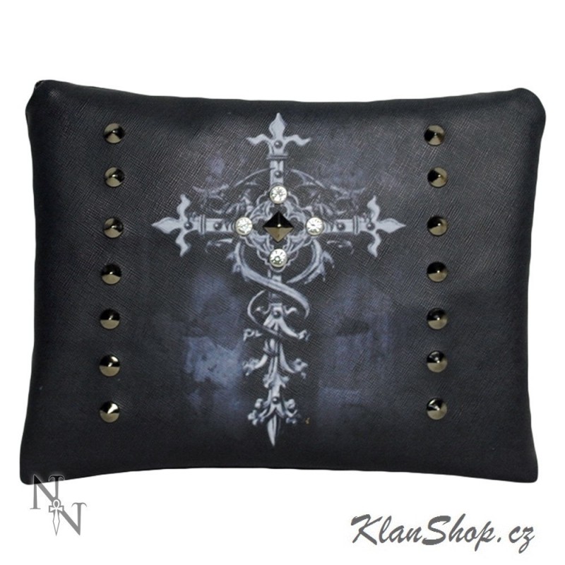Kabelka, malá taška - textil - kříž s cvoky a pyramidou.