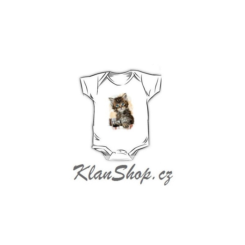 Dětské bílé (kojenecké) body (dupačky) s potiskem – Mále sedící koťátko.