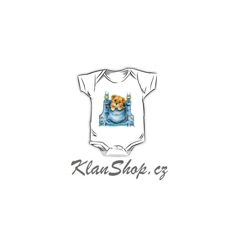 Dětské bílé (kojenecké) body (dupačky) s potiskem – Malé štěnátko v kapse.