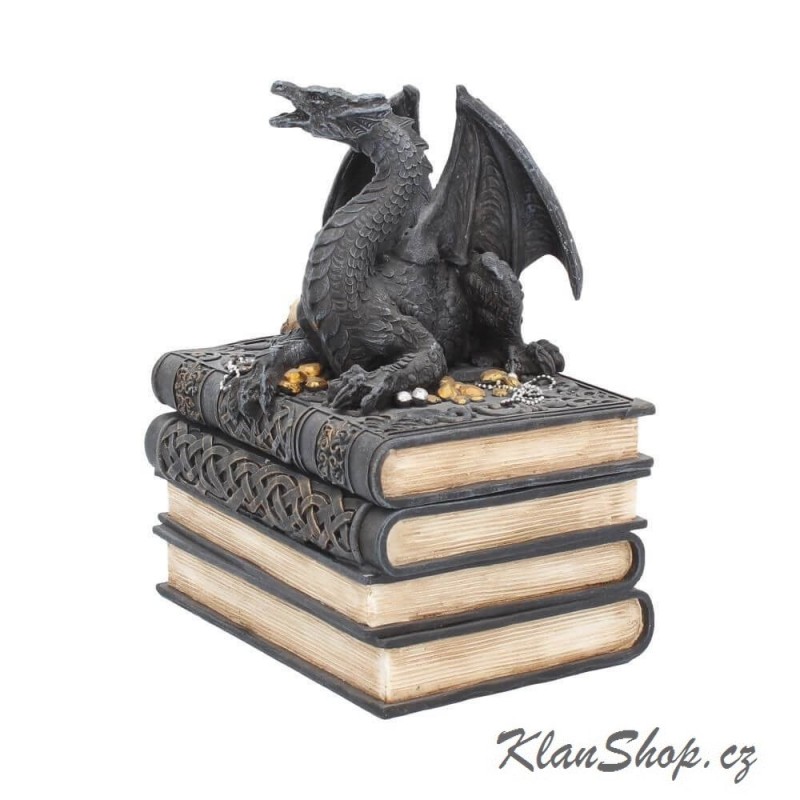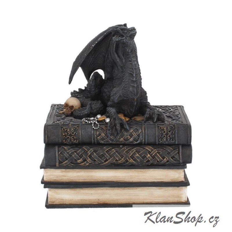 Dekorační krabička (úložný box či dóza) - černý drak na knihách.