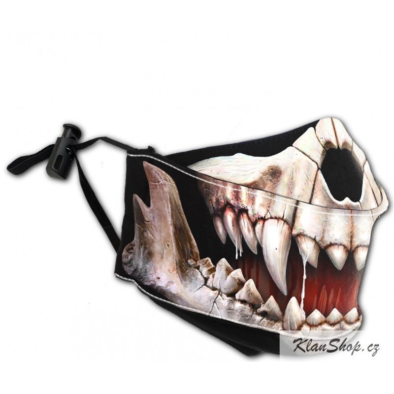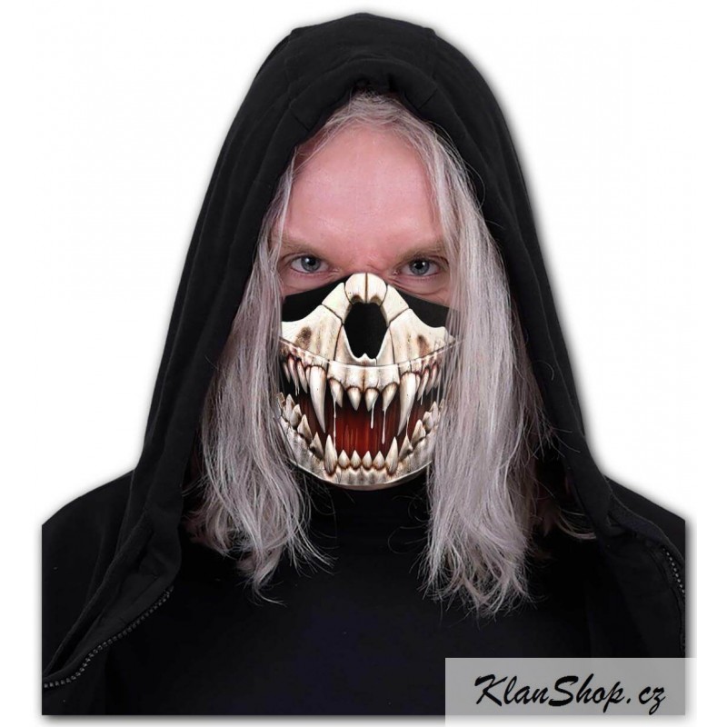 Ochranná maska s potiskem - upíří tesáky, lebka s vyceněnými zuby.