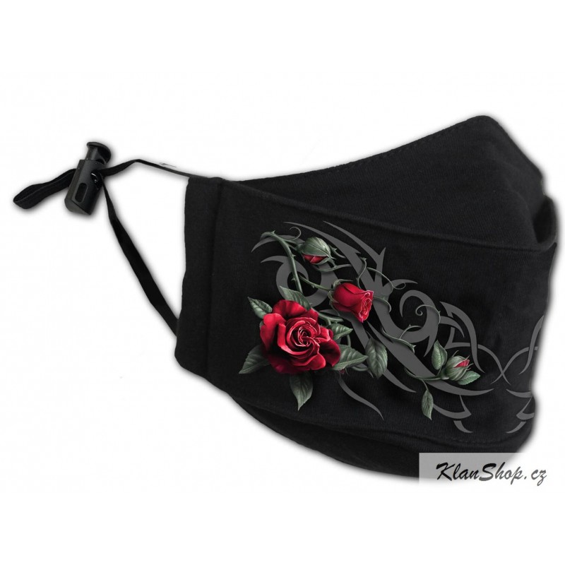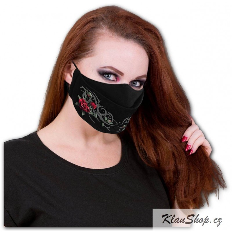 Ochranná maska s potiskem - tribal motiv s červenými růžemi.
