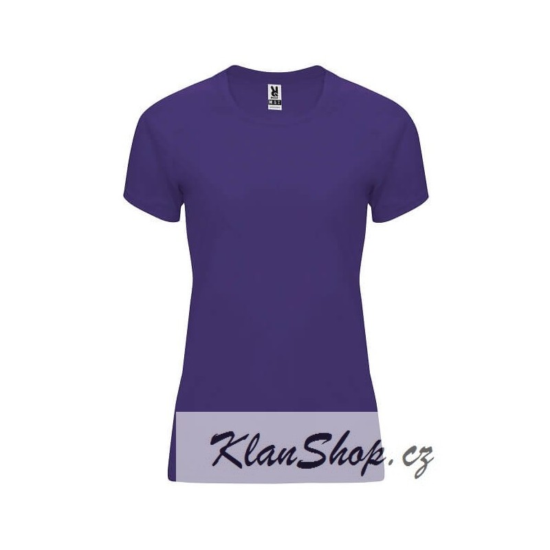 Dámské tmavě fialové funkční fitness (sportovní) tričko s krátkým rukávem, bez potisku.