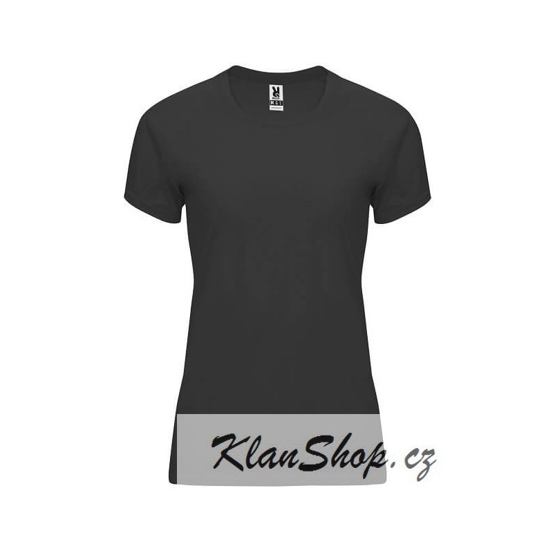 Dámské šedé funkční fitness (sportovní) tričko s krátkým rukávem, bez potisku.