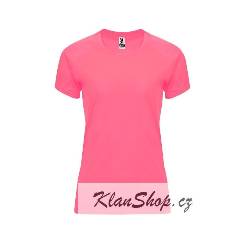 Dámské svítivě růžové funkční fitness (sportovní) tričko s krátkým rukávem, bez potisku.