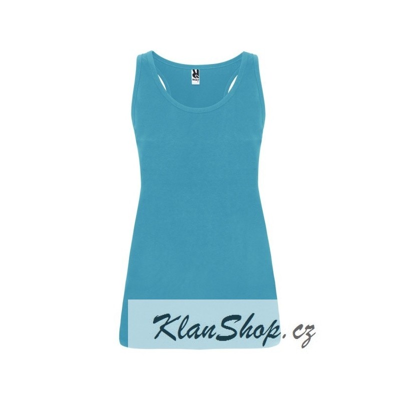 Dámské tyrkysové tílko bez potisku.