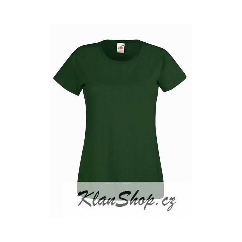 Dámské tmavě zelené (lahvově zelené) tričko s krátkým rukávem bez potisku.