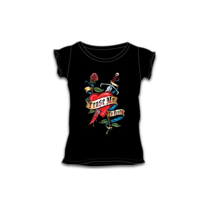 Dámské tričko s krátkým rukávem a potiskem, probodnuté srdce.