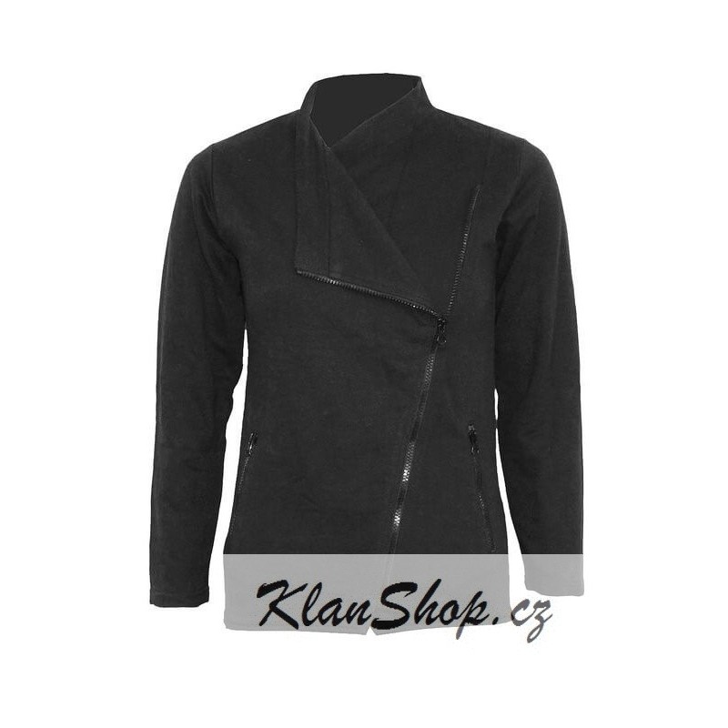 Dámská fleecová bunda motorkářského stylu, bez potisku.