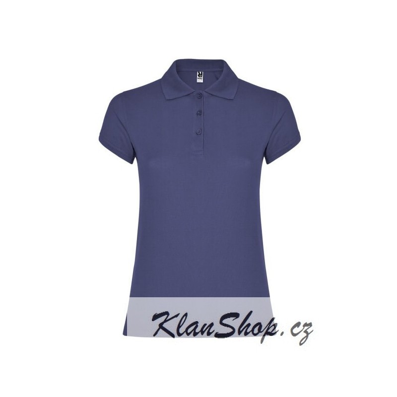 Dámská denim modrá polokošile (dámské polo tričko) s krátkým rukávem, bez potisku.