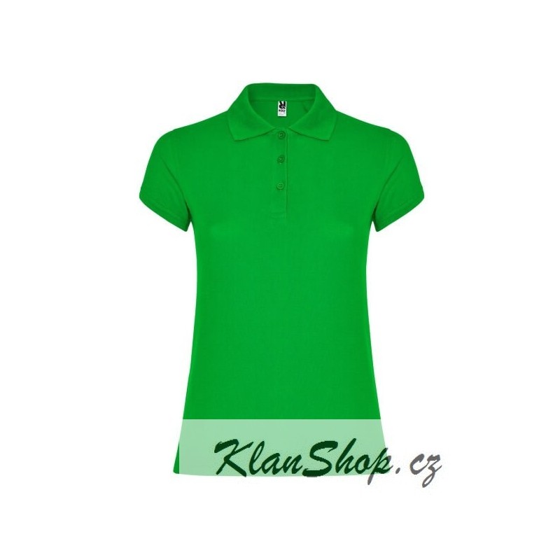 Dámská zelená polokošile (dámské polo tričko) s krátkým rukávem, bez potisku.