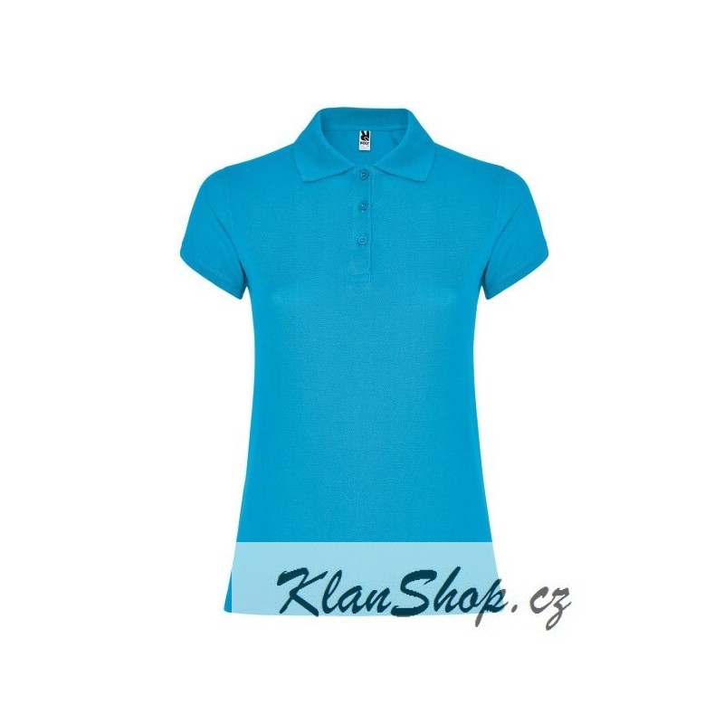 Dámská tyrkysová polokošile (dámské polo tričko) s krátkým rukávem, bez potisku.