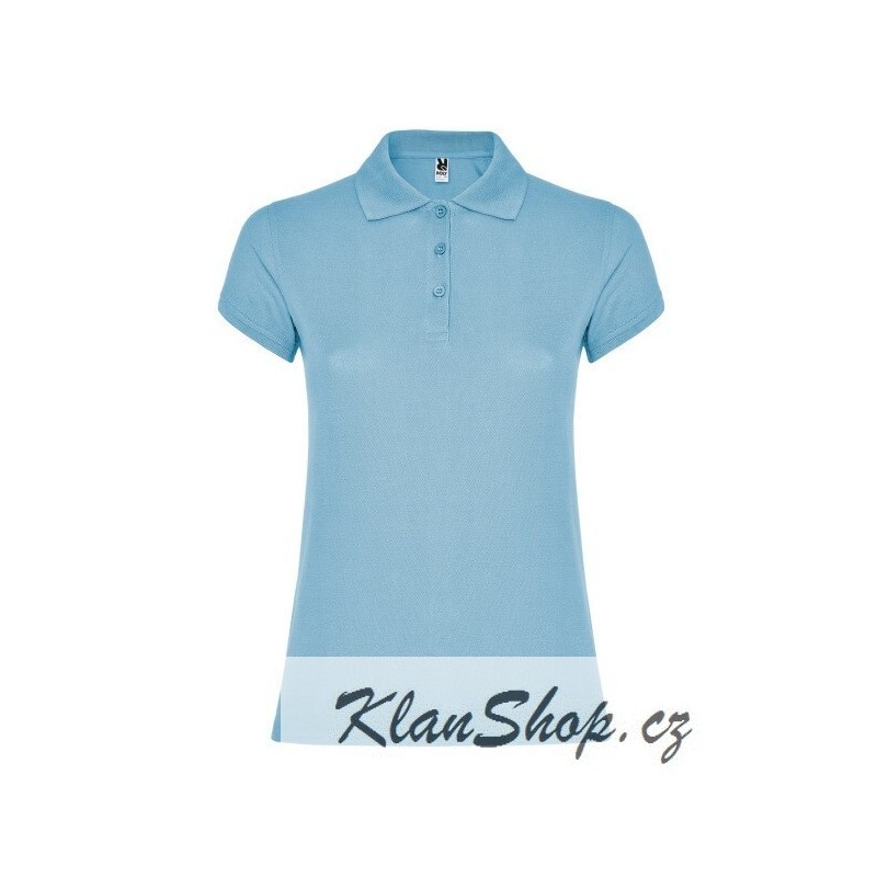 Dámská světle modrá polokošile (dámské polo tričko) s krátkým rukávem, bez potisku.