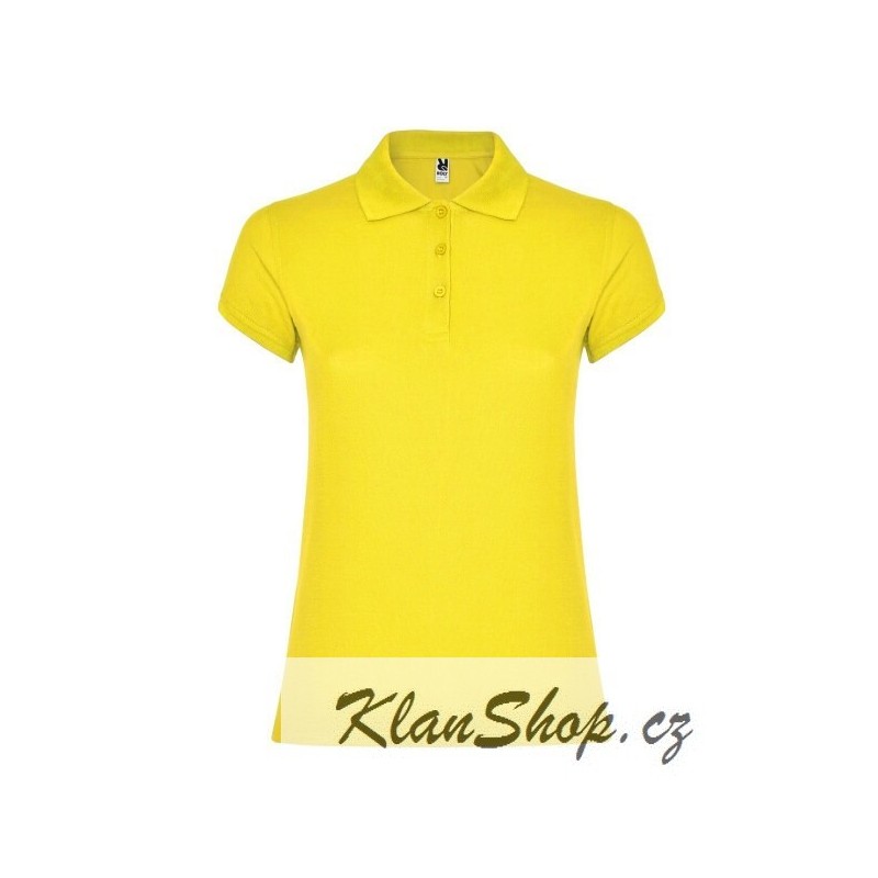 Dámská žlutá polokošile (dámské polo tričko) s krátkým rukávem, bez potisku.