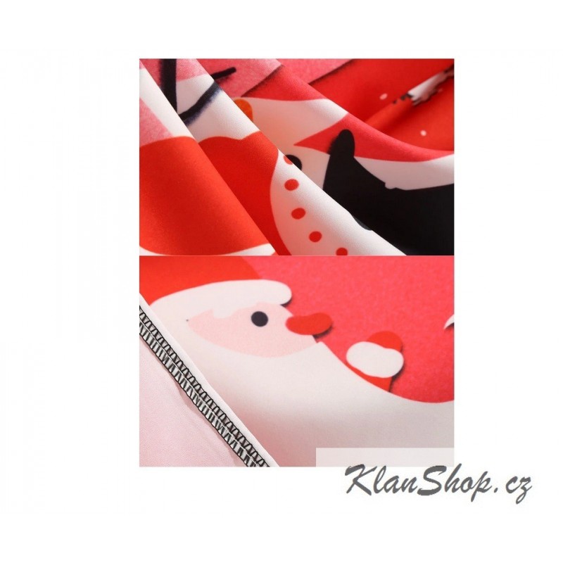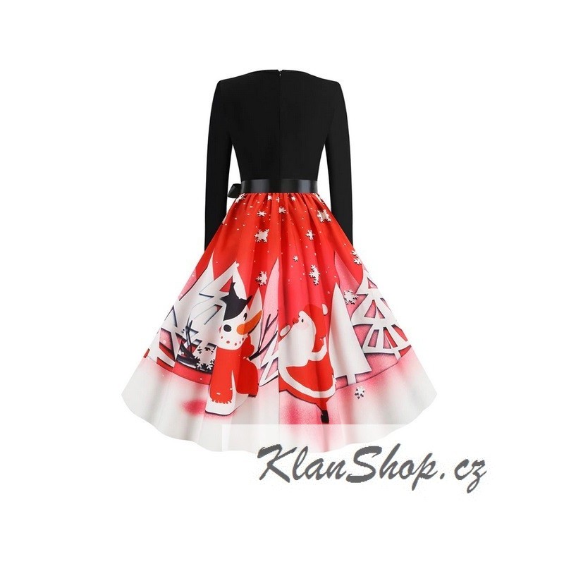 Dámské retro (rockabilly) dlouhé šaty ve stylu pin-up s dlouhými rukávy - Vánoční krajinka, sněhulák se Santou.