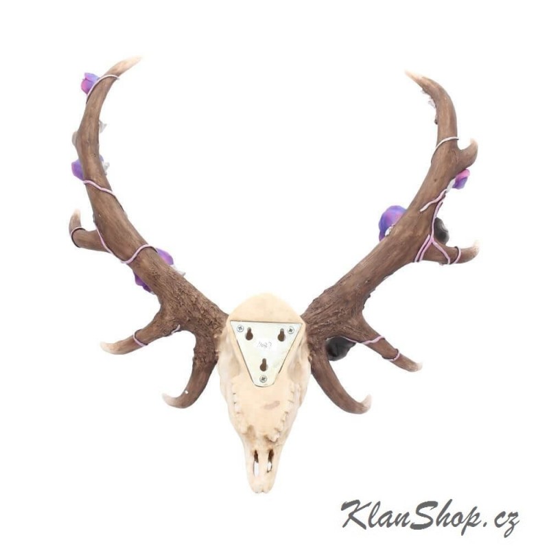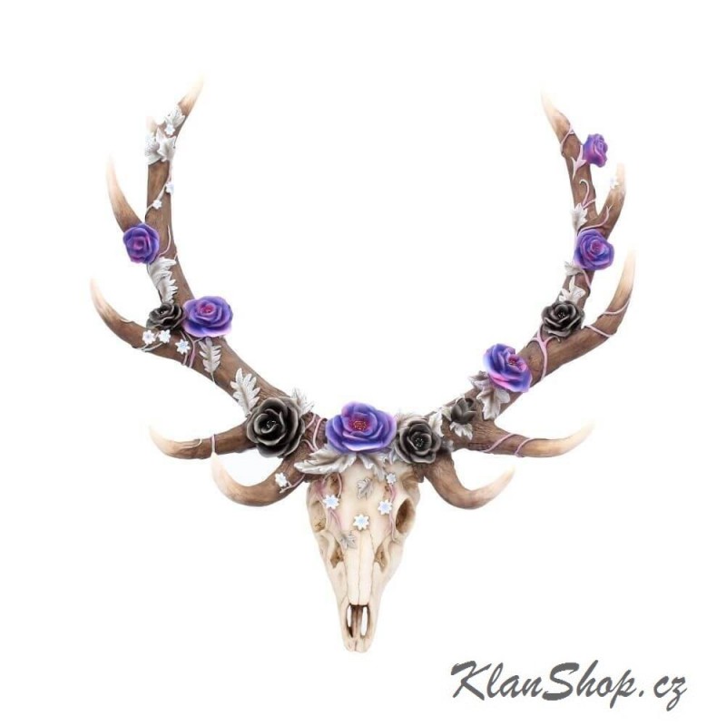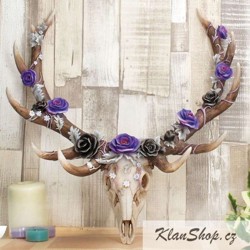 Nástěnná dekorace na zeď - zvířecí lebka s parohy a růžemi.