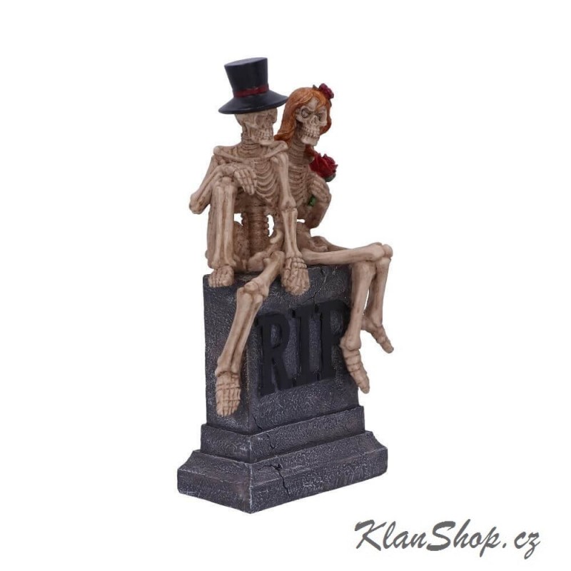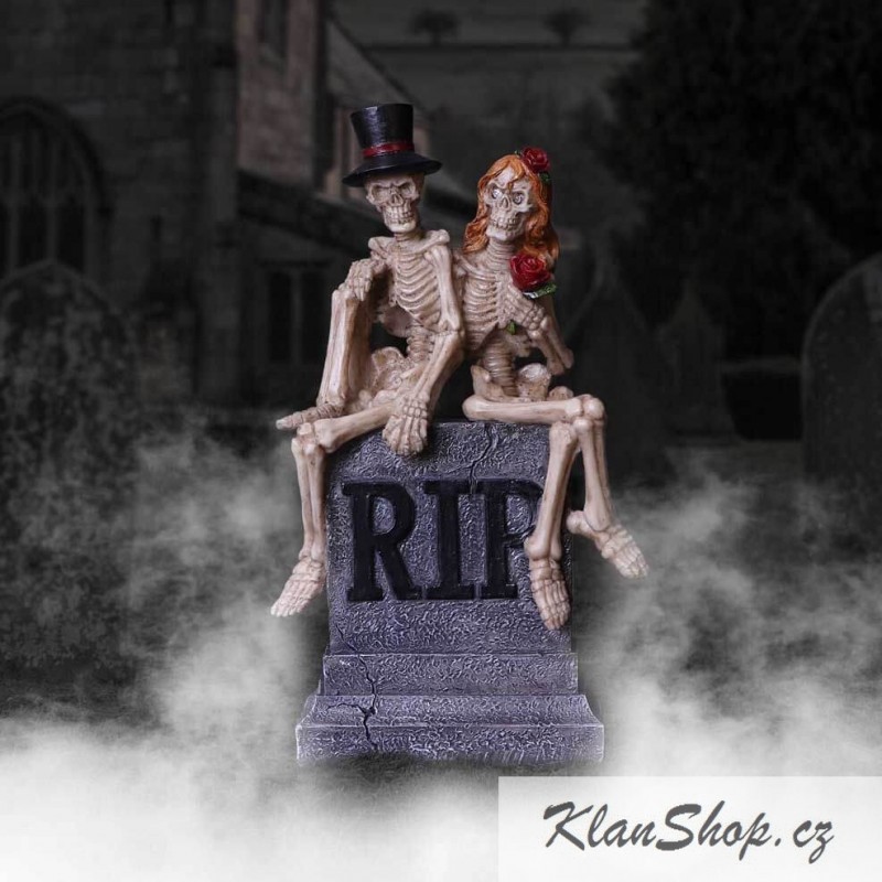 Dekorační soška (figurína) - kostlivci - manželé na náhrobním kameni - RIP.