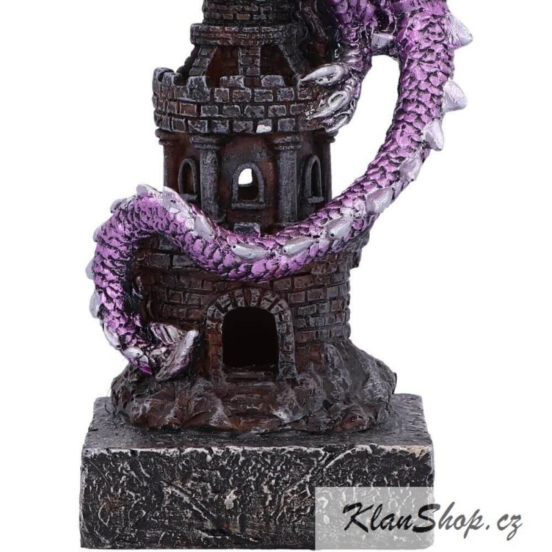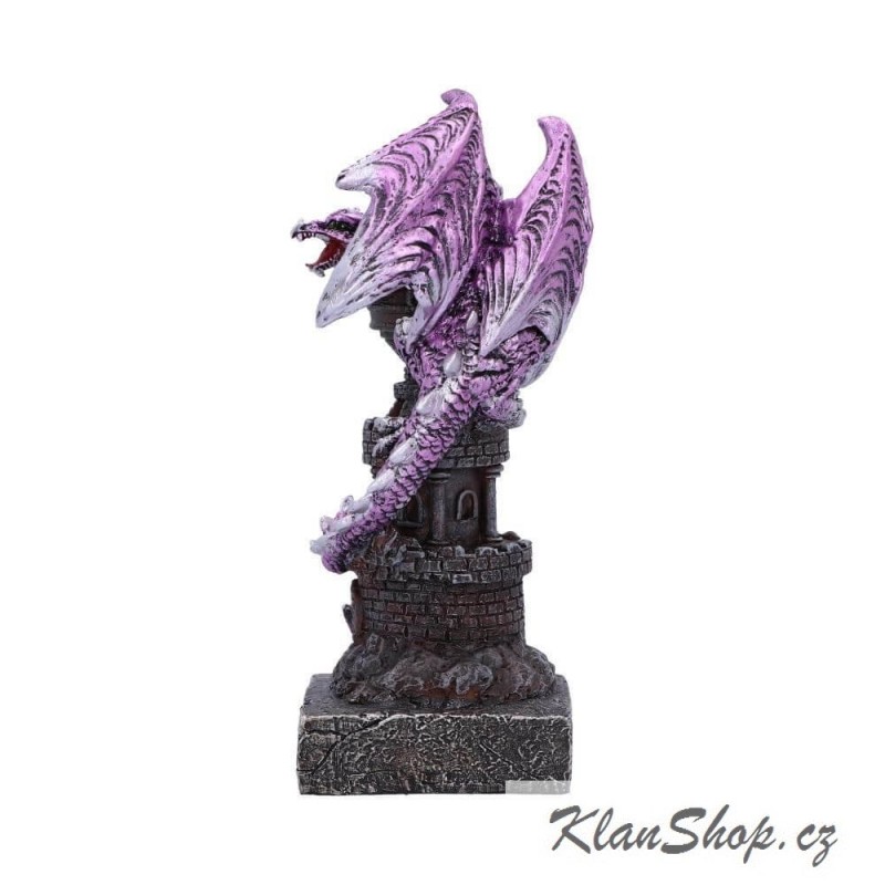 Dekorační soška (figurína) - Fialový rozzuřený drak na věži.