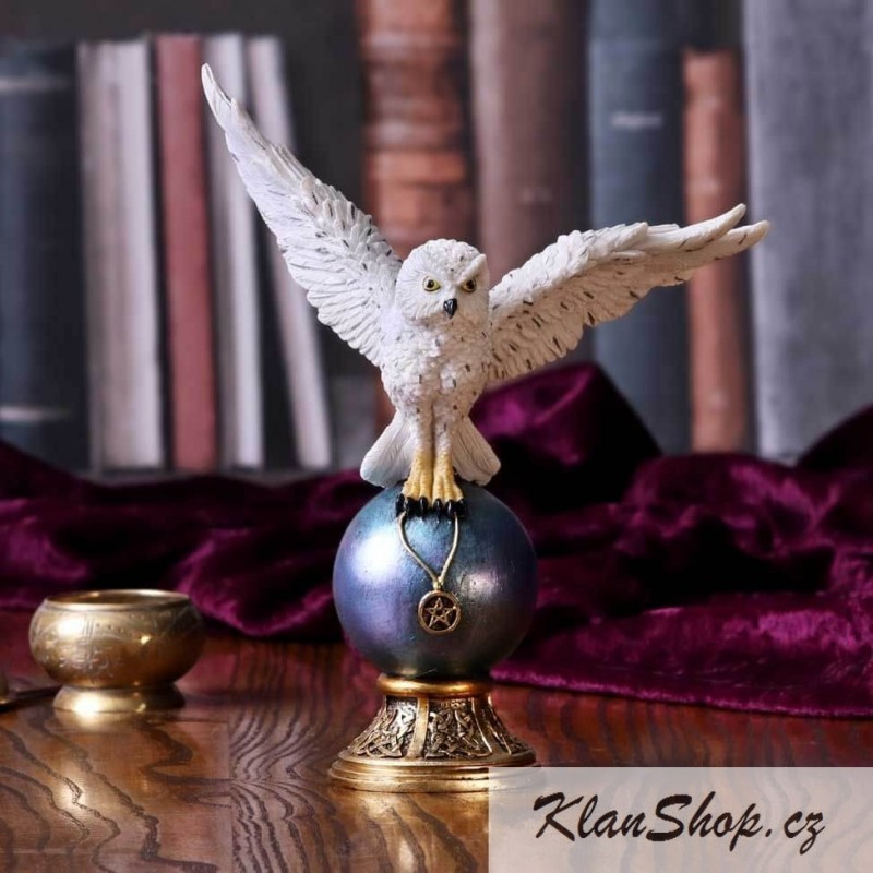 Dekorační soška (figurína) - Velká bílá sova s pentagramem.