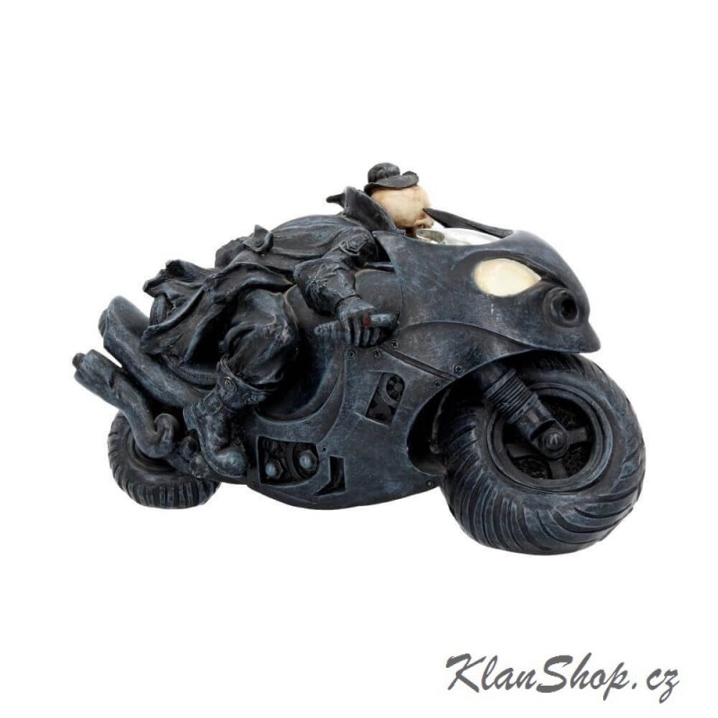 Dekorační soška (figurína) - kostlivec na silniční motorce - ghost rider.