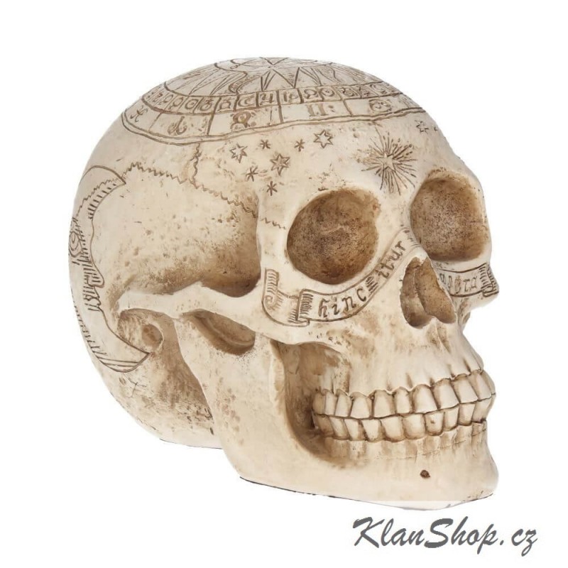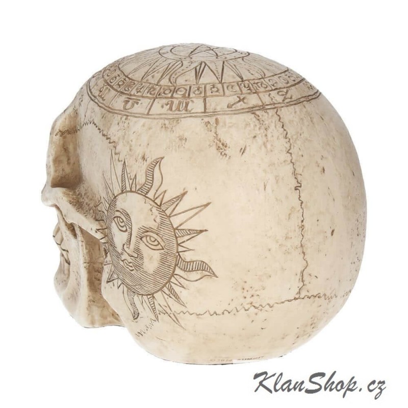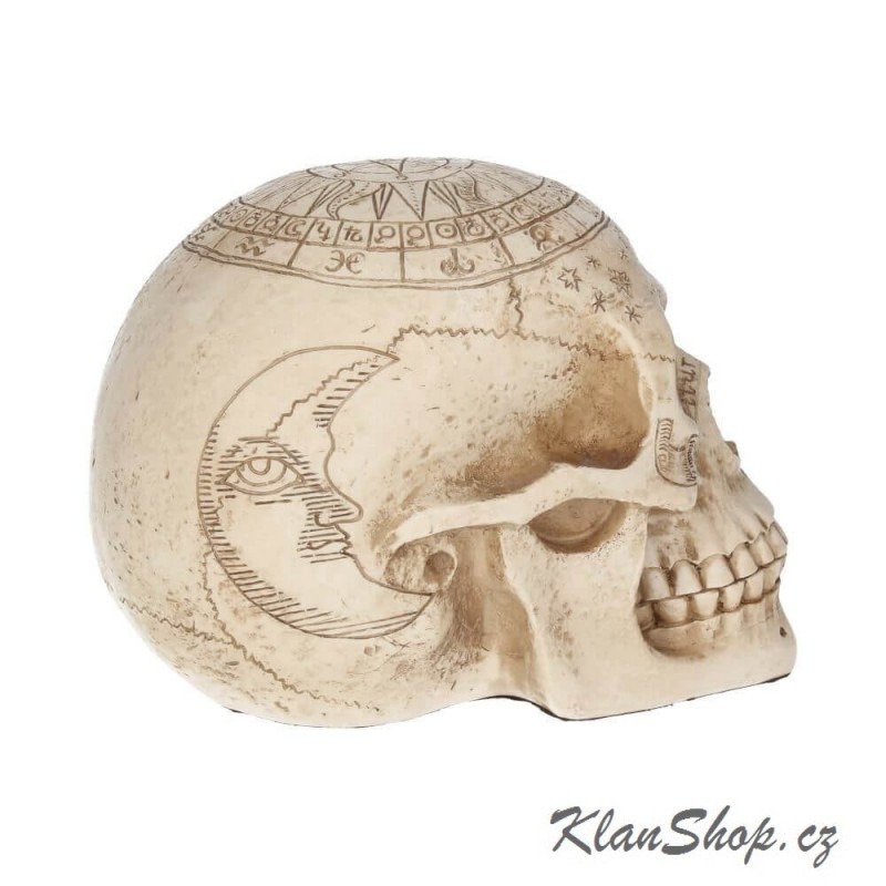 Dekorační soška (figurína) - lebka s astrologickými symboly.
