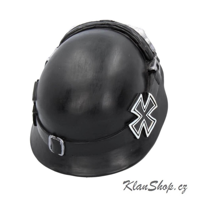 Dekorační soška (figurína) - lebka v motorkářské helmě s leteckými (chopper) brýlemi s maltézským (chopper) křížem.