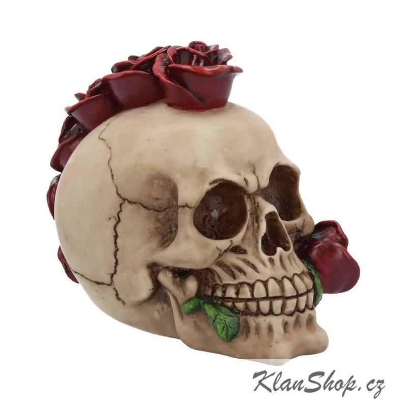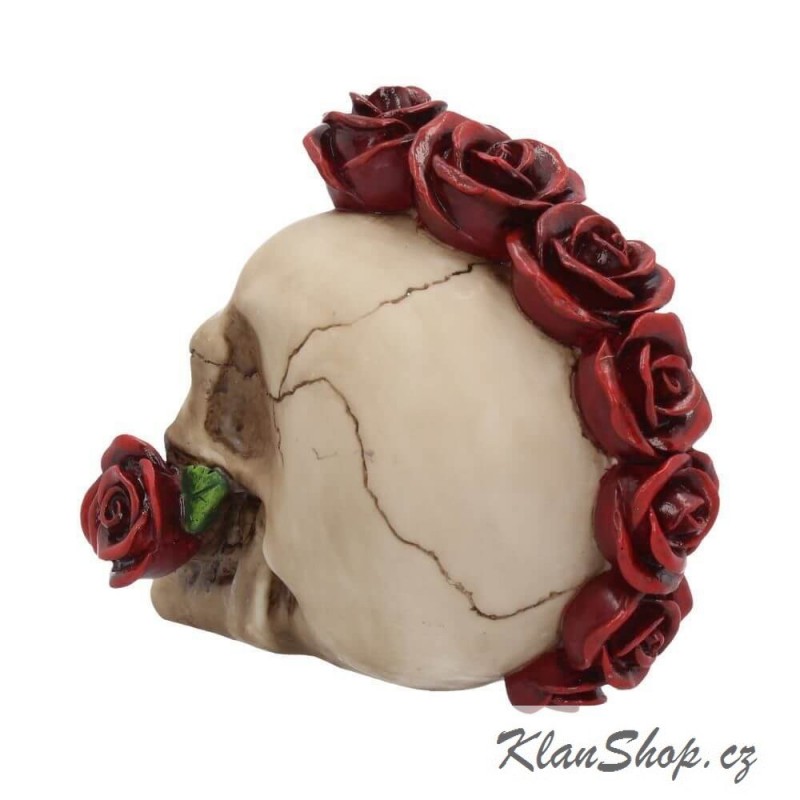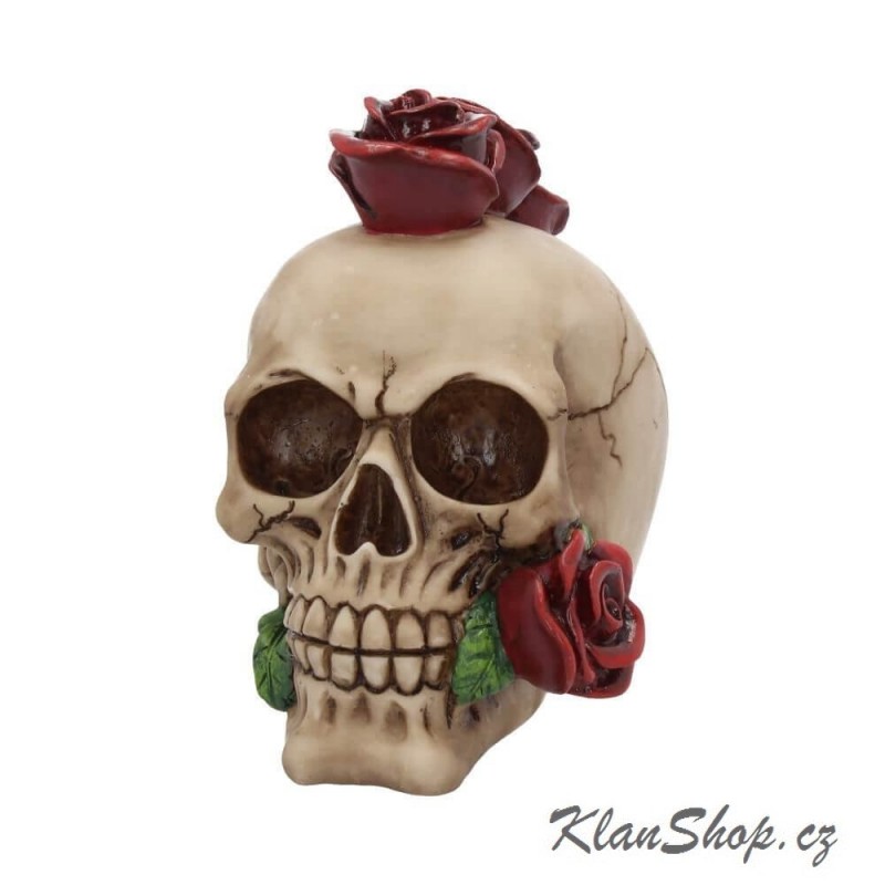 Dekorační soška (figurína) - lebka s čírem z červených růží.