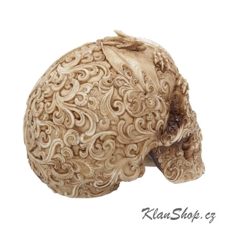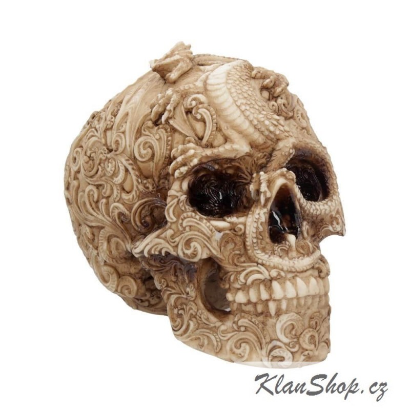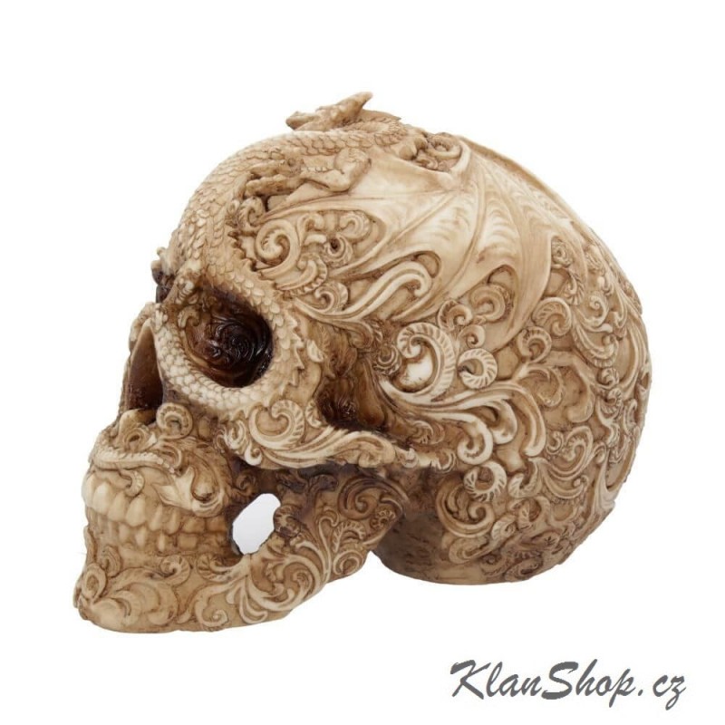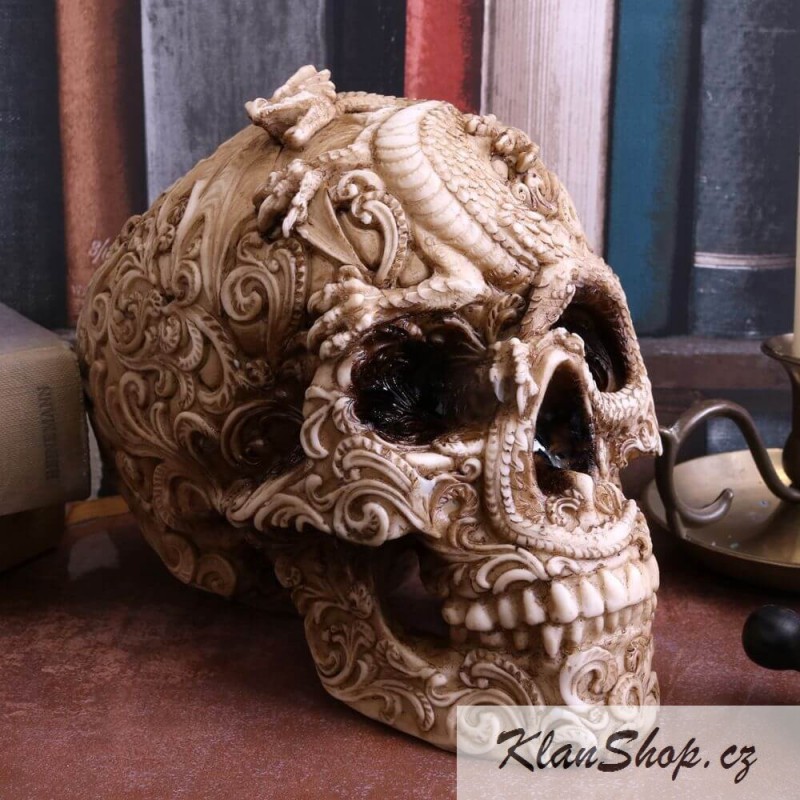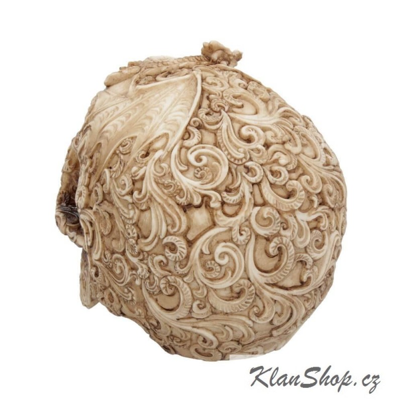 Dekorační soška (figurína) - lebka tvořená z ornamentů s drakem.