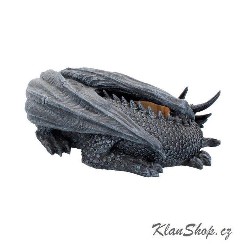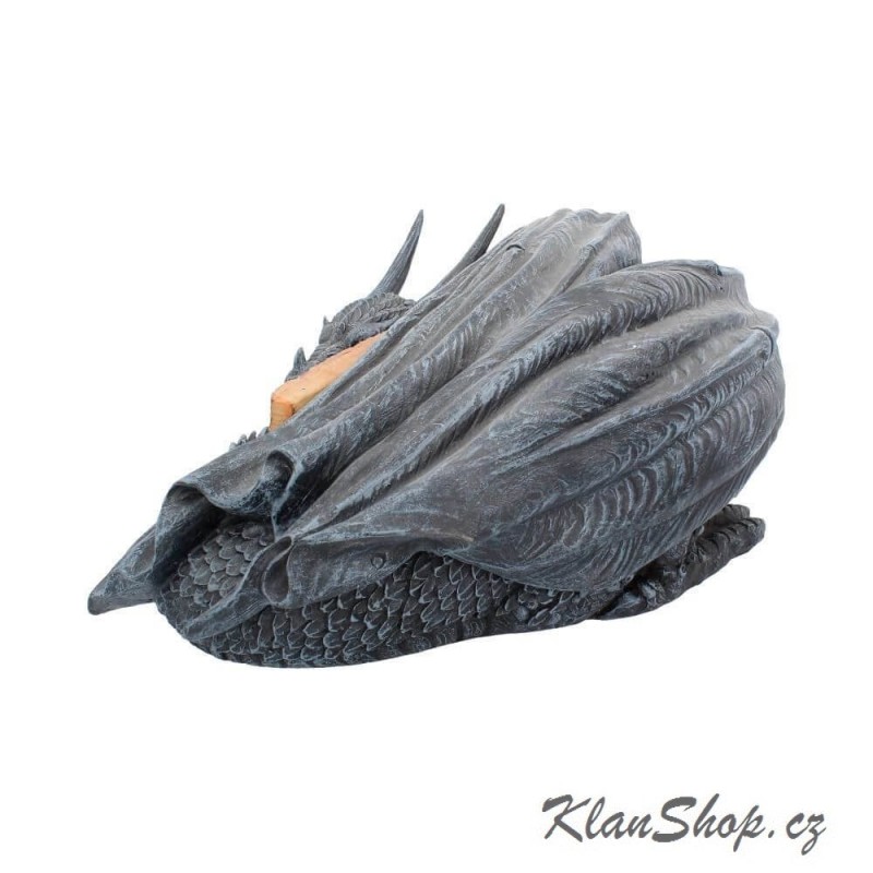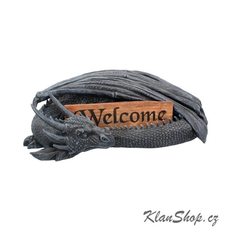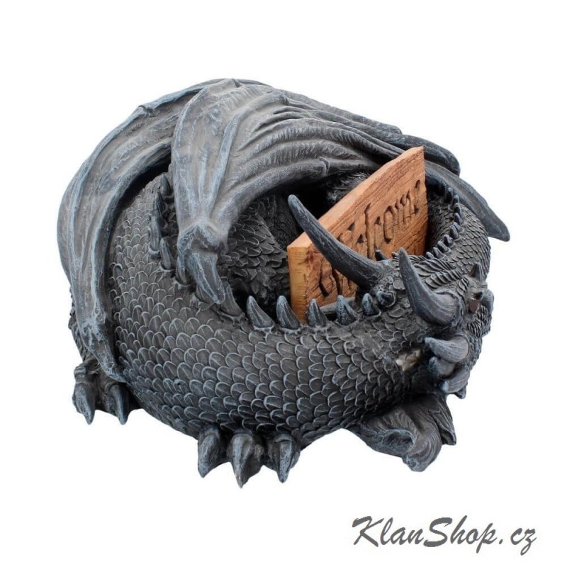 Dekorační figurína (figura) - velká - ležící černý drak s nápisem welcome (vítejte).