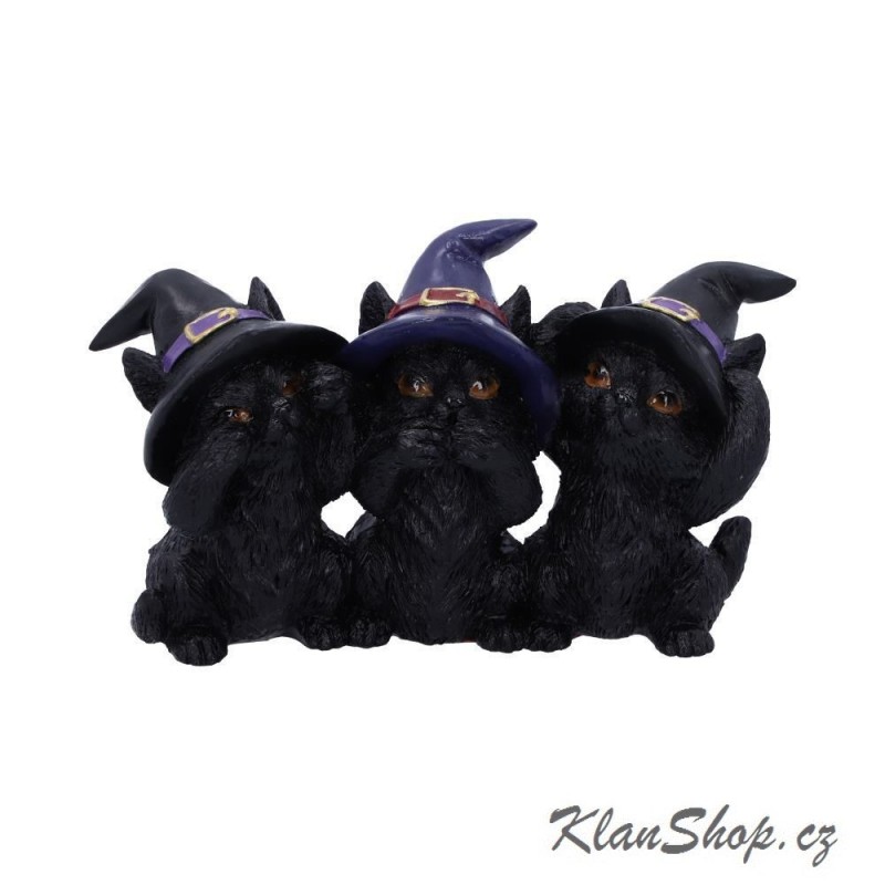 Dekorace - figurka (soška, figurína) - tři černé kočky čarodějnice - nevidím, neslyším, nemluvím.