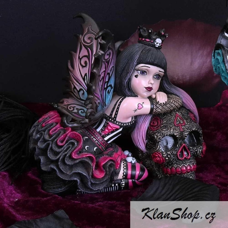 Dekorace - figurka (soška, figurína) -malá gotická lesní víla s lebkou.