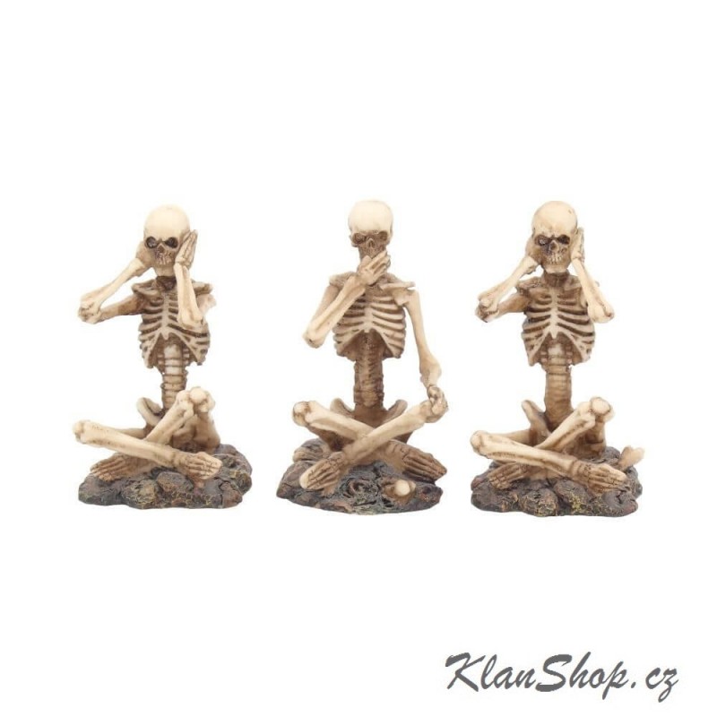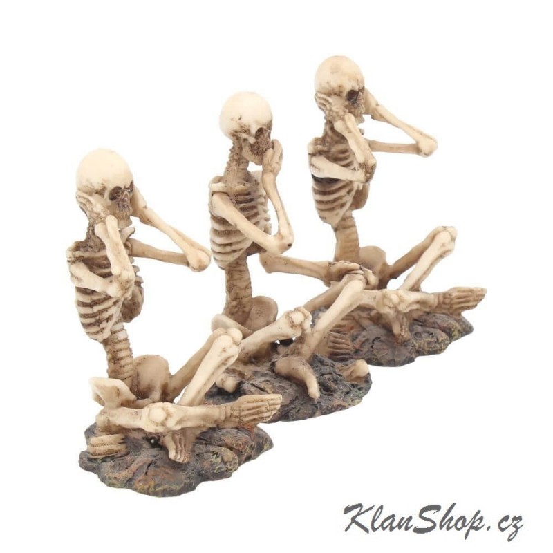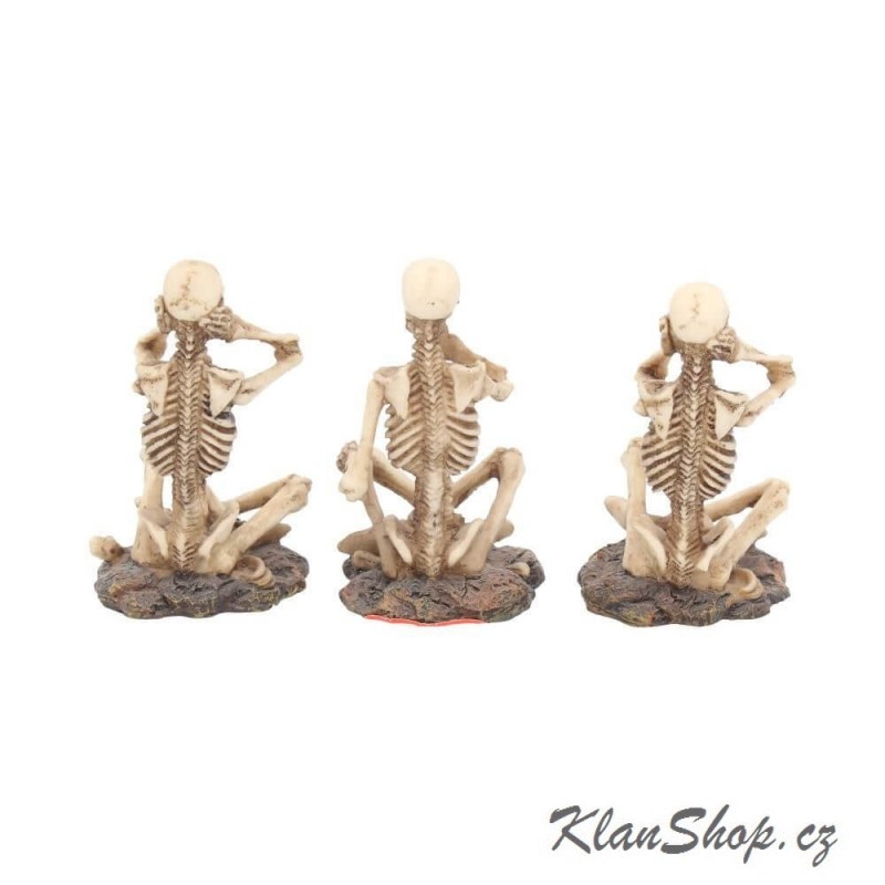 Dekorace - figurka (soška, figurína) - sedící kostlivci - nevidím, neslyším, nemluvím.