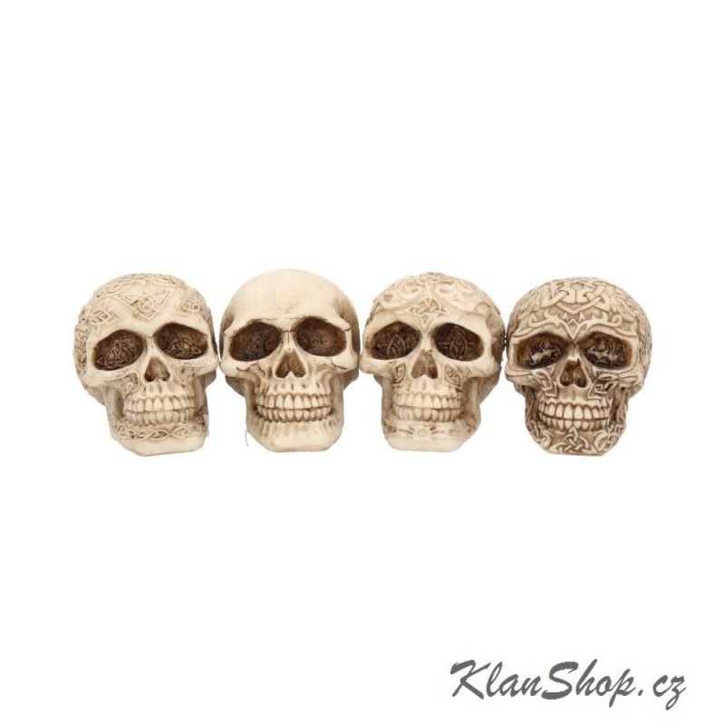 Dekorace - figurka (soška, figurína) - 4 lebky s různými vzory - balení 4ks.