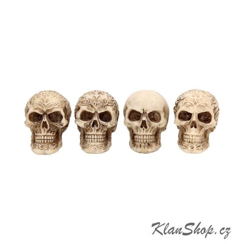 Dekorace - figurka (soška, figurína) - 4 lebky s různými vzory - balení 4ks.