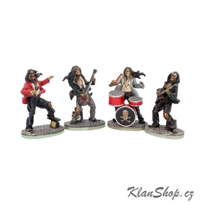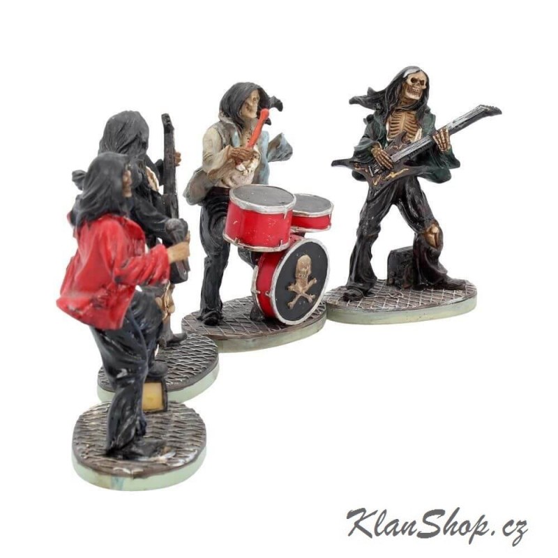 Dekorace - figurka (soška, figurína) - kapela z pekla, kostlivci hrající na hudební nástroje - balení 4 ks.