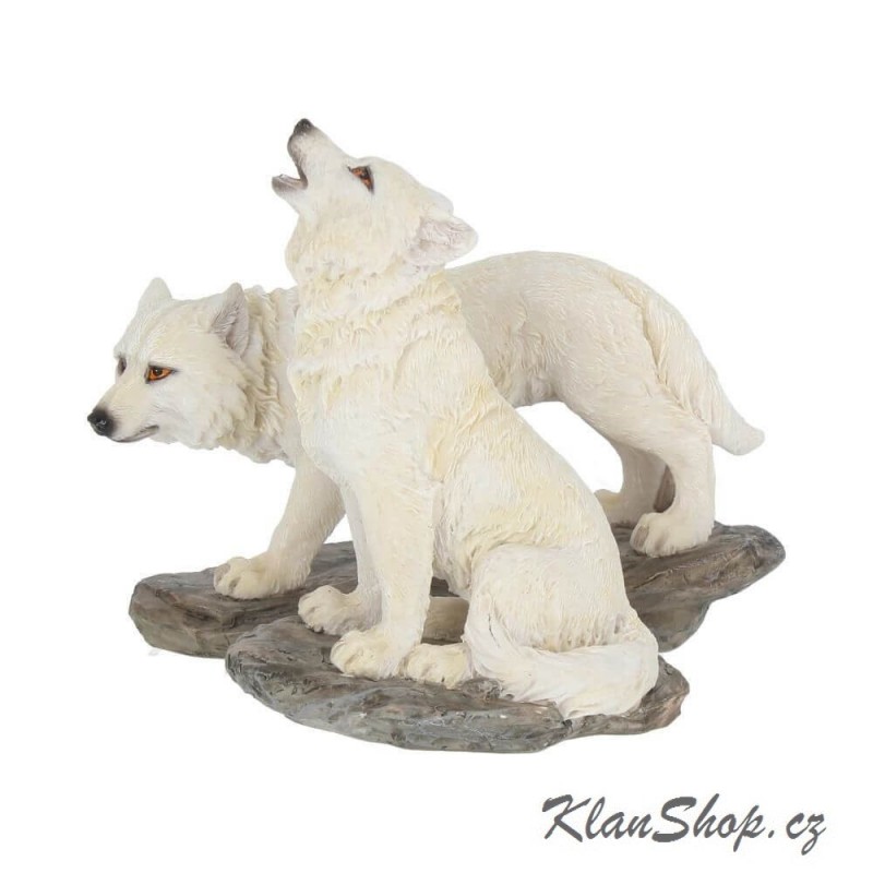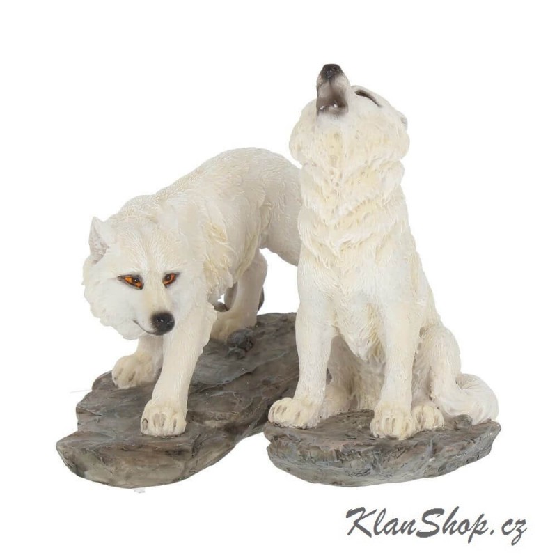Dekorace - figurka (soška, figurína) - set dvou sněžných vlků.