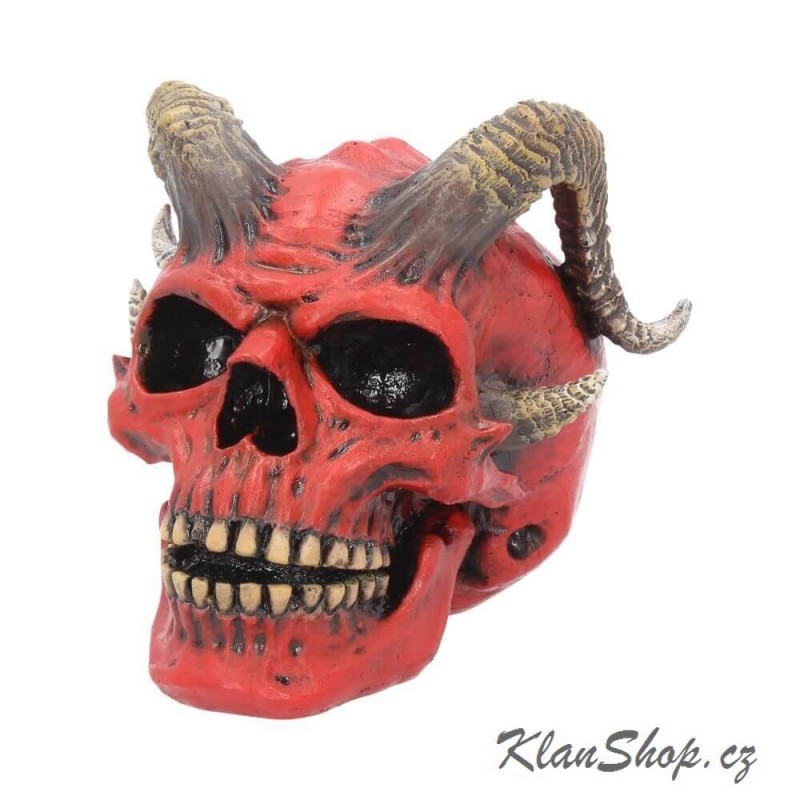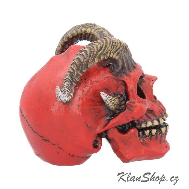 Dekorace - figurka (soška, figurína) - rudá lebka s rohama, satan.