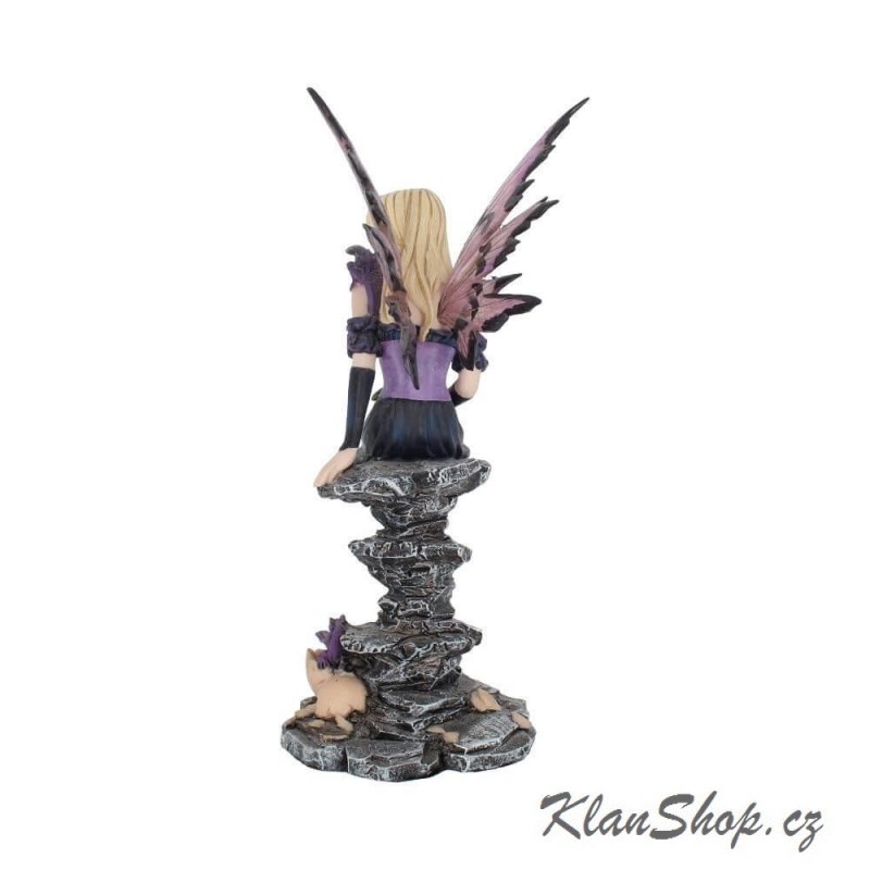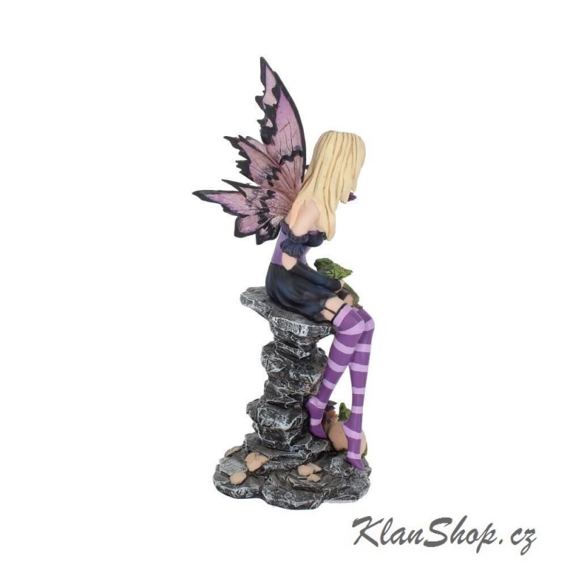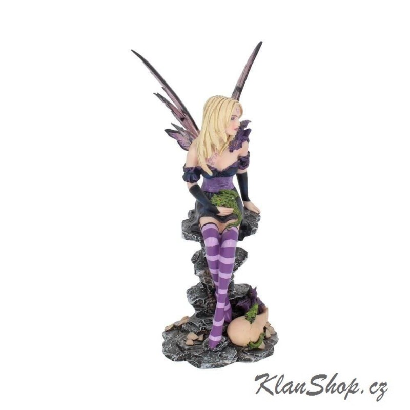 Dekorace - figurka (soška, figurína) - víla držící zeleného dráčka.