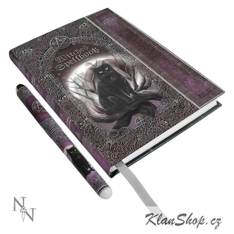 Deník (deníček) s motivem - deník kouzel se černou kočkou.