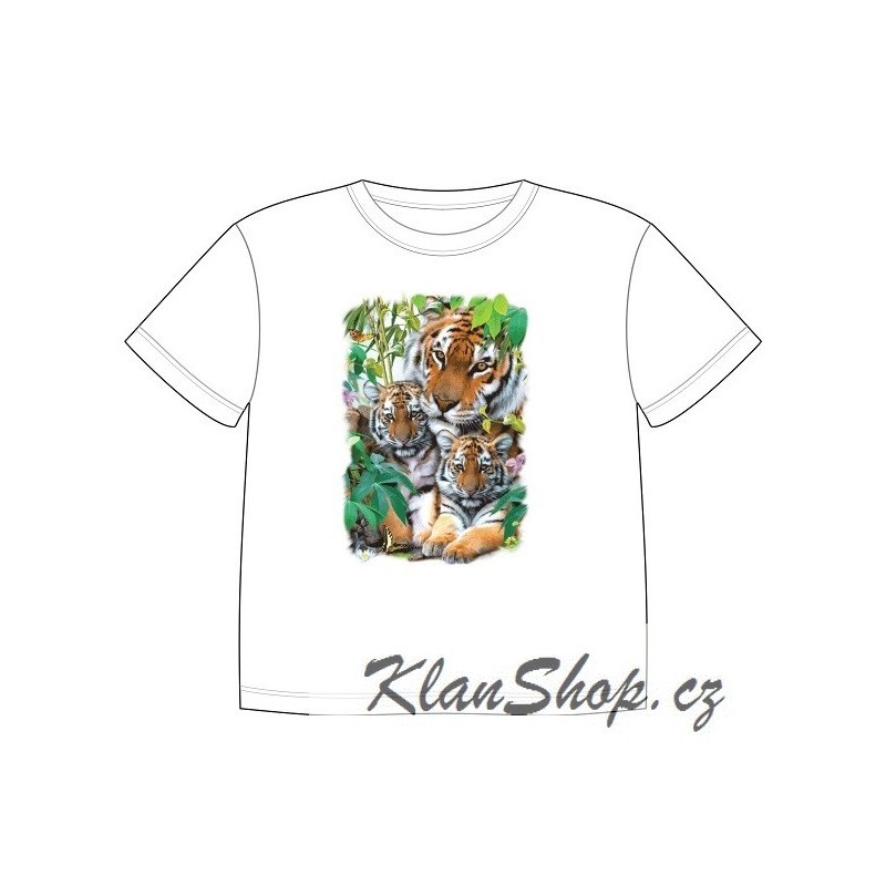 Dětské tričko s dobravujícím se potiskem – Tygří rodinka.