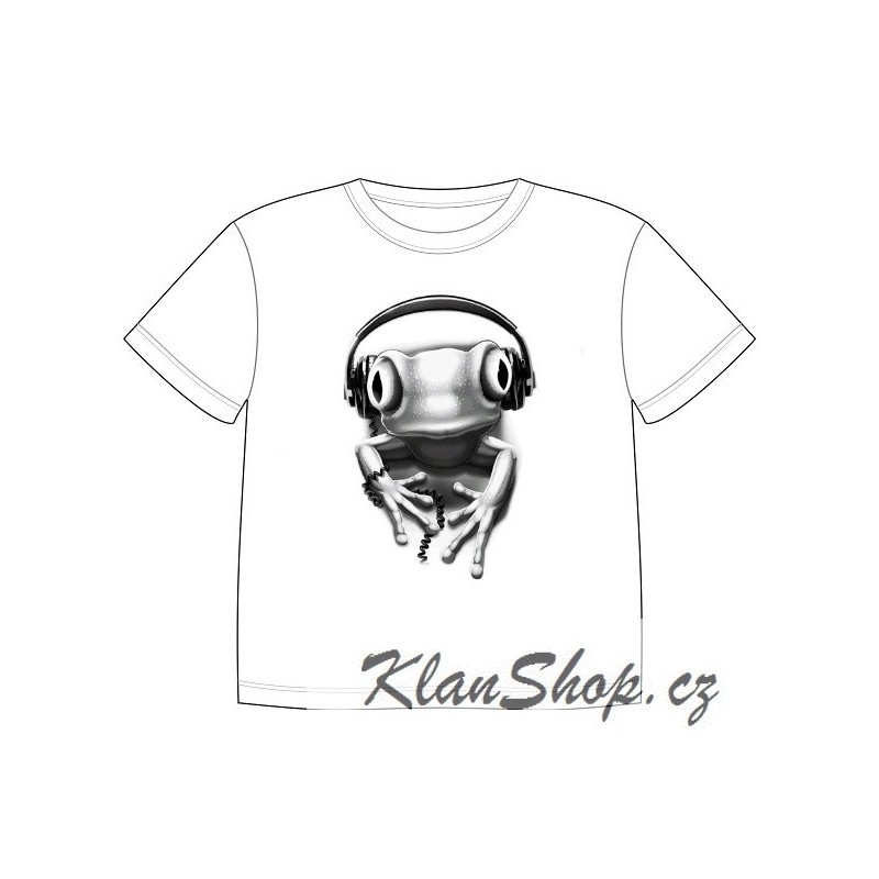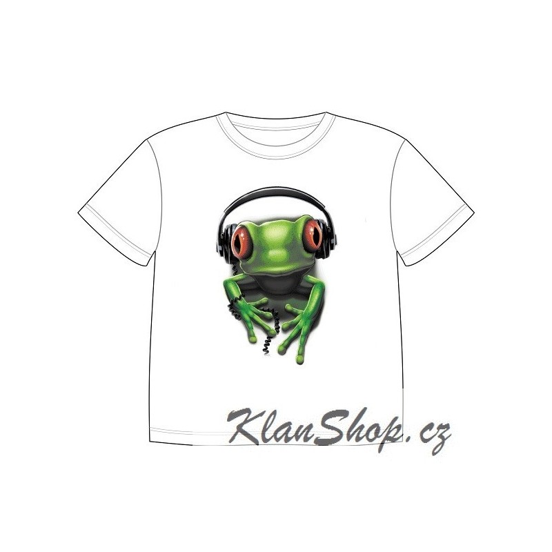 Dětské tričko s dobravujícím se potiskem – Zelená žabička se sluchátky.