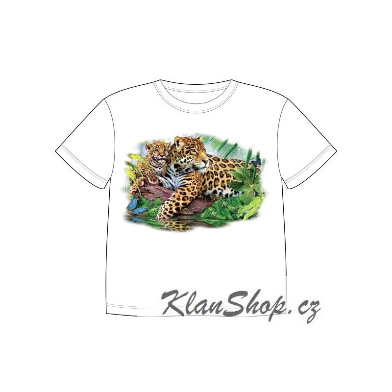 Dětské tričko s dobravujícím se potiskem – Jaguáří rodinka.