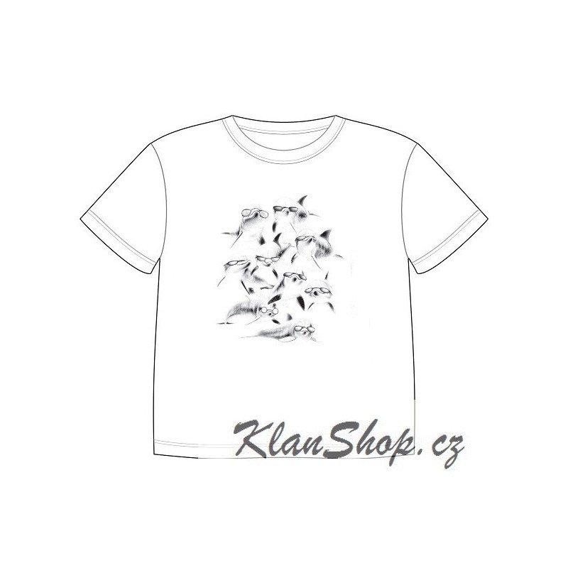 Dětské tričko s dobravujícím se potiskem – Skupinka delfínů.