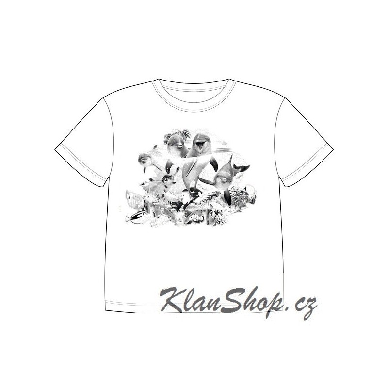 Dětské tričko s dobravujícím se potiskem – Podmořský svět, hrající si delfíni.