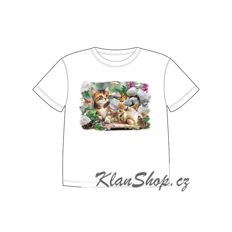 Dětské tričko s dobravujícím se potiskem – Hrající si malá koťátka.