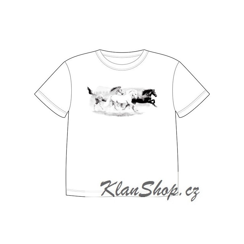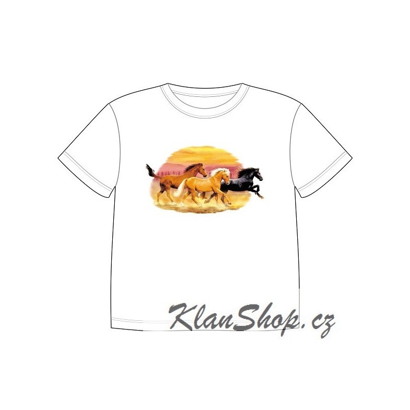 Dětské tričko s dobravujícím se potiskem – Stádo divokých koní.