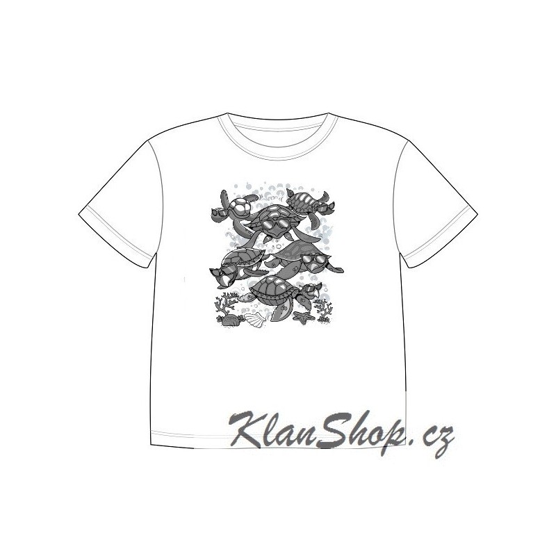 Dětské tričko s dobravujícím se potiskem – Hrající si želvy s brýlemi.