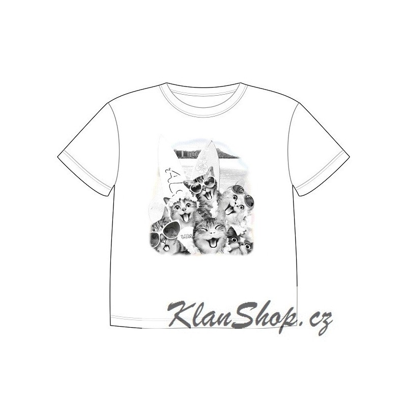 Dětské tričko s dobravujícím se potiskem – Malá koťátka hrající si na pláži.