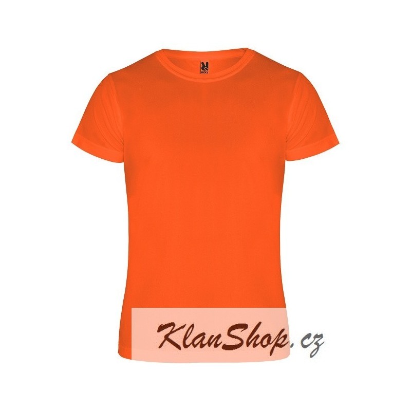 Dětské svítivě oranžové fitness sportovní tričko s krátkým rukávem, bez potisku.