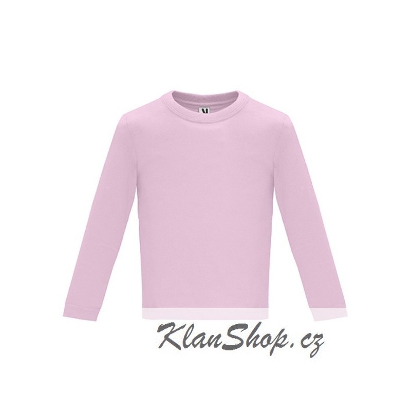Dětské světle růžové tričko s dlouhým rukávem bez potisku, pro kojence a batolata 6M-24M.